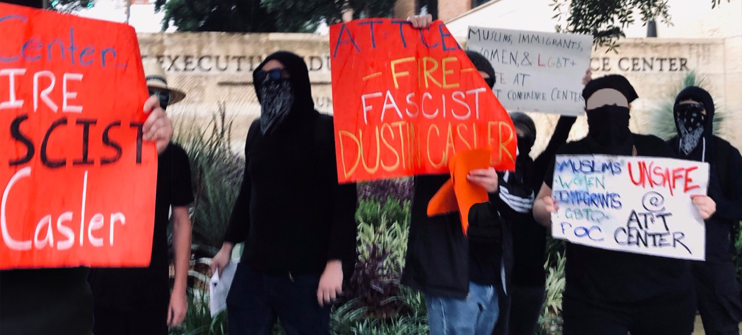 Antifascists marched on the AT&T Hotel and Conference Center as they chanted, “Fire Dustin Casler!”