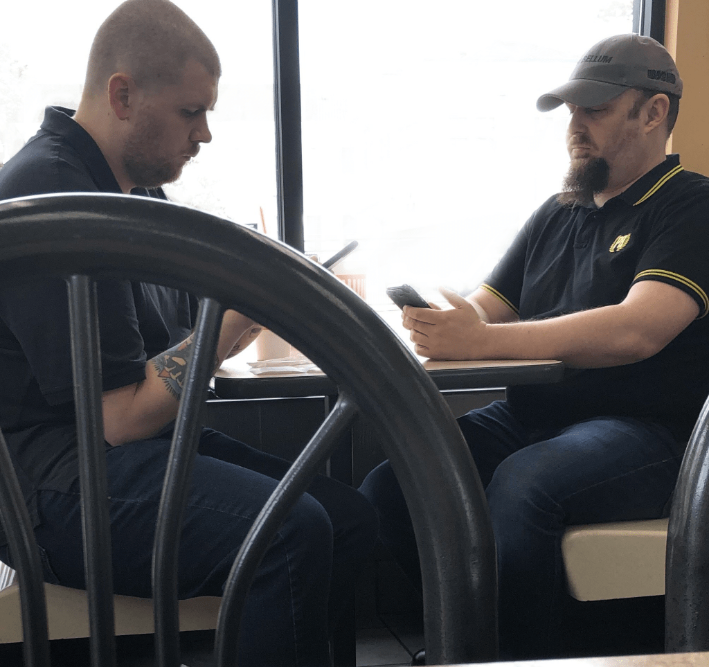 Dustin Casler meeting with fellow Proud Boy in Uniform