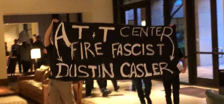 The antifascists informed the AT&T Hotel and Conference Center that Dustin Casler’s employment will not be swept under the rug and that actions will continue until a public announcement is made of his termination.